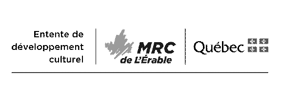 Ce projet est réalisé grâce au soutien du Gouvernement du Québec et de la MRC de l’Érable dans le cadre de l’Entente de développement culturel de la MRC de l’Érable. |